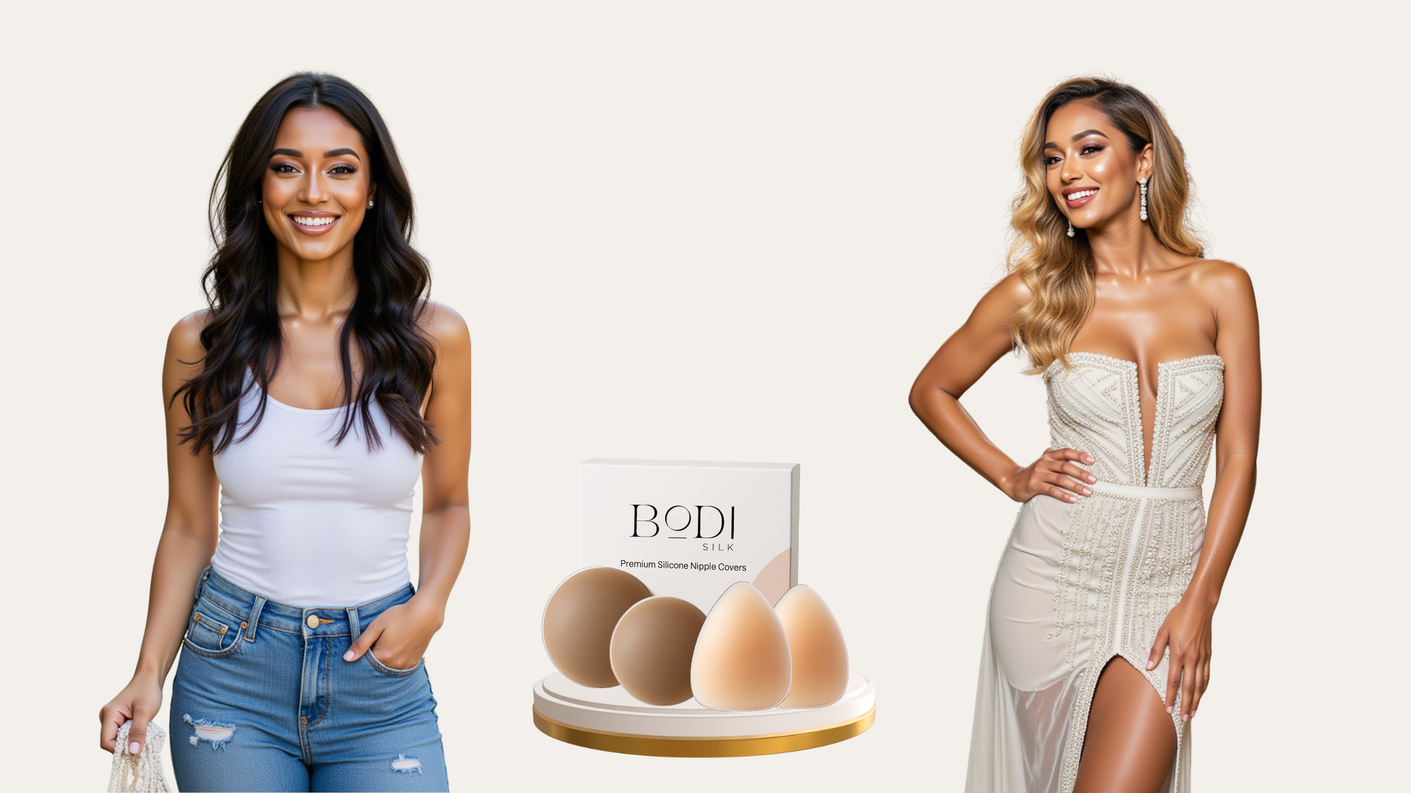 See the before and after of using the Bodi Silk Circle Nipple Cover.